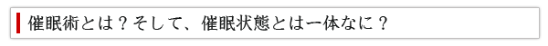 一般的に催眠術とはこの催眠状態に誘導して、被催眠者を催眠術師の暗示通りに行動、または思考することを言います。
